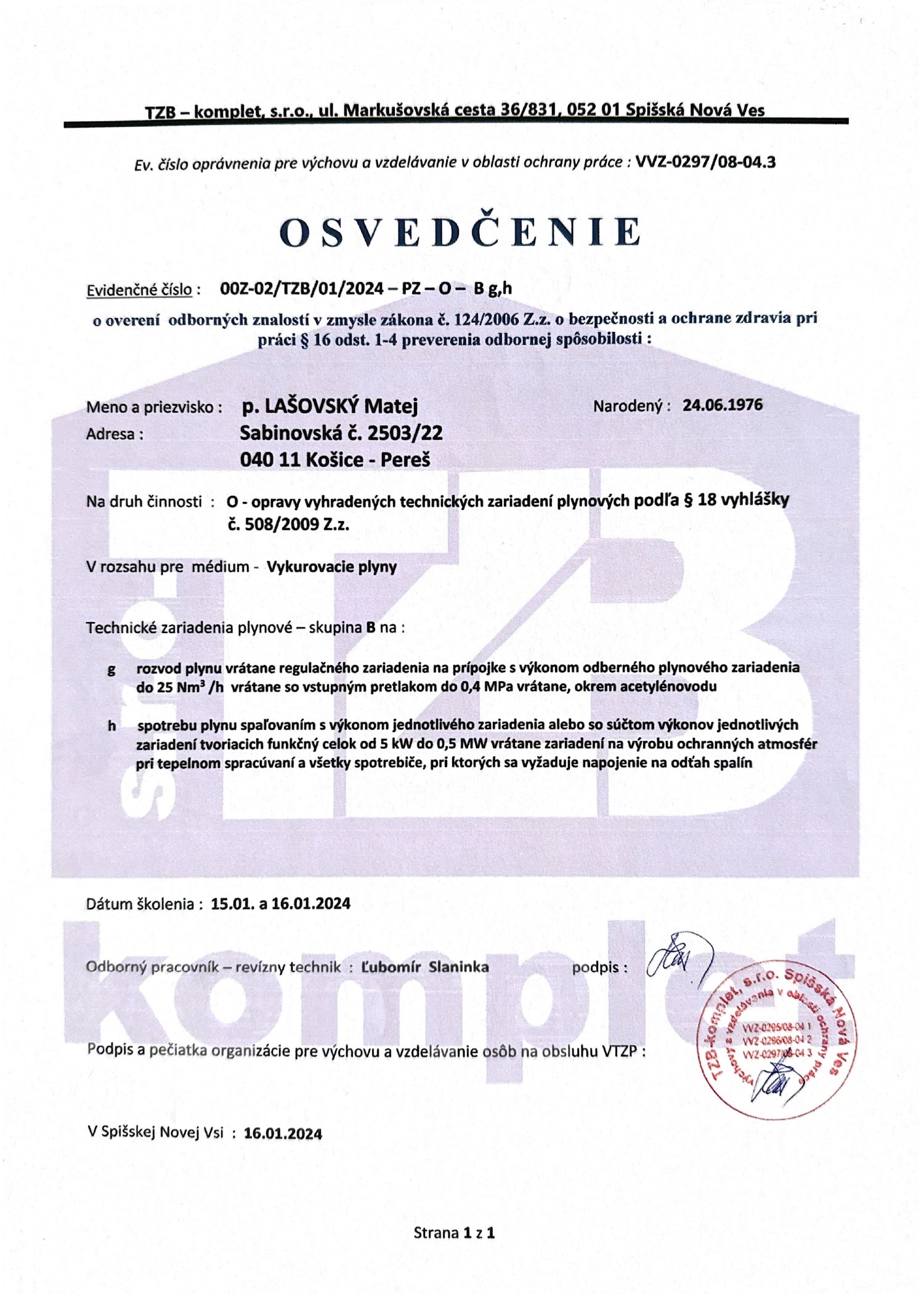 Oprávnenie ENBRA - montáž určených meradiel - Staško S.
